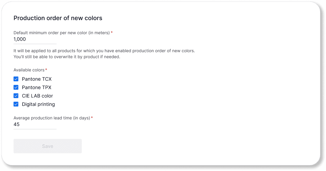 If clients request new colors, fill in the required information and choose the method your company uses, such as: