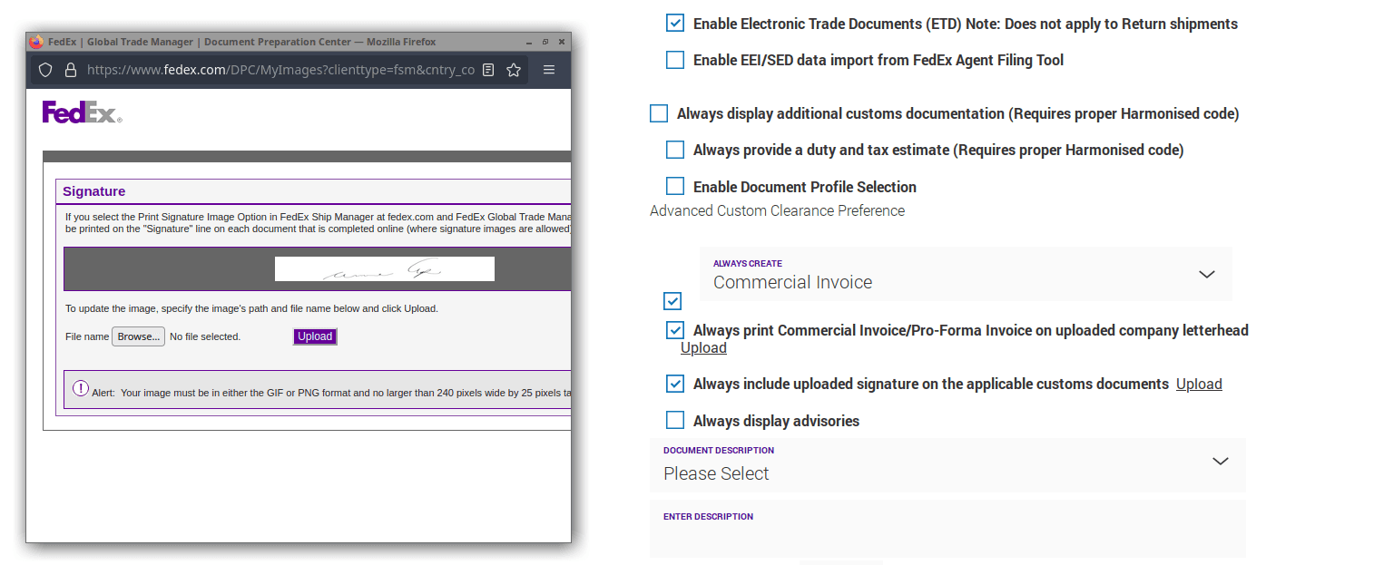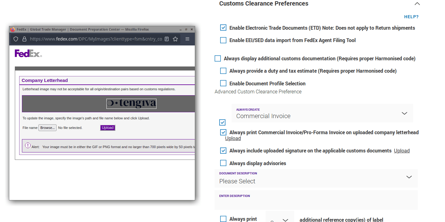 In the form, you will be asked to upload the same 2 documents you previously uploaded to FedEx.