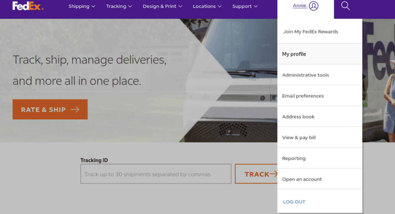 Leave your FedEx account open in a separate tab. You may need to quickly reference or copy details, such as your account number, when filling out the integration form in Tengiva.