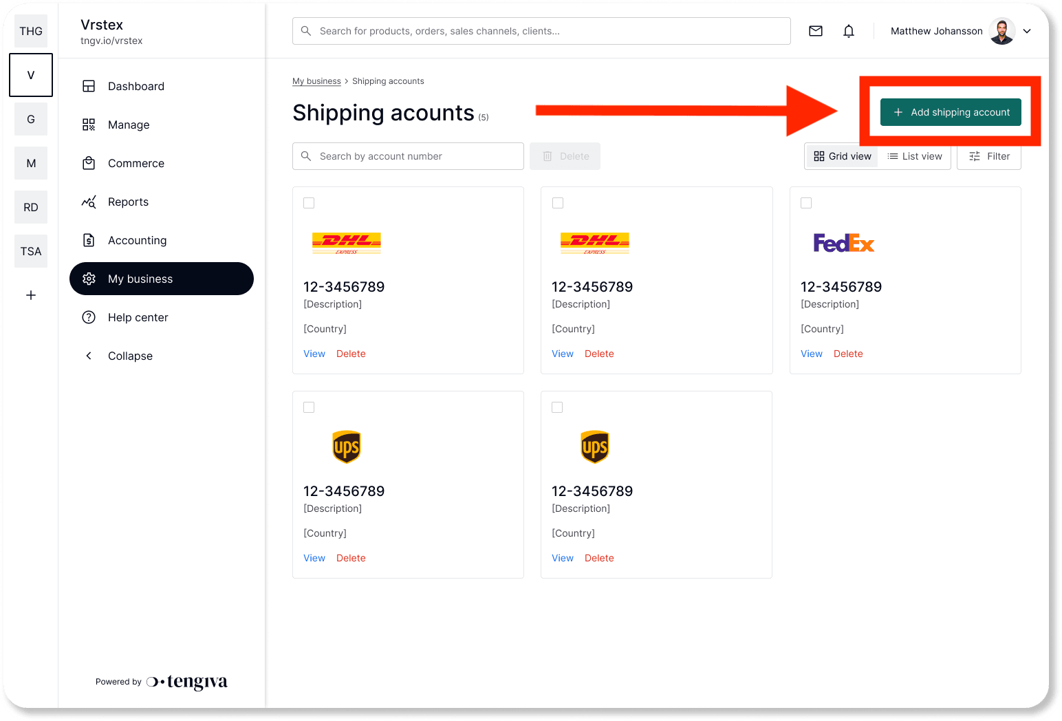 Step 1: Click on Add shipping account in the top right corner.