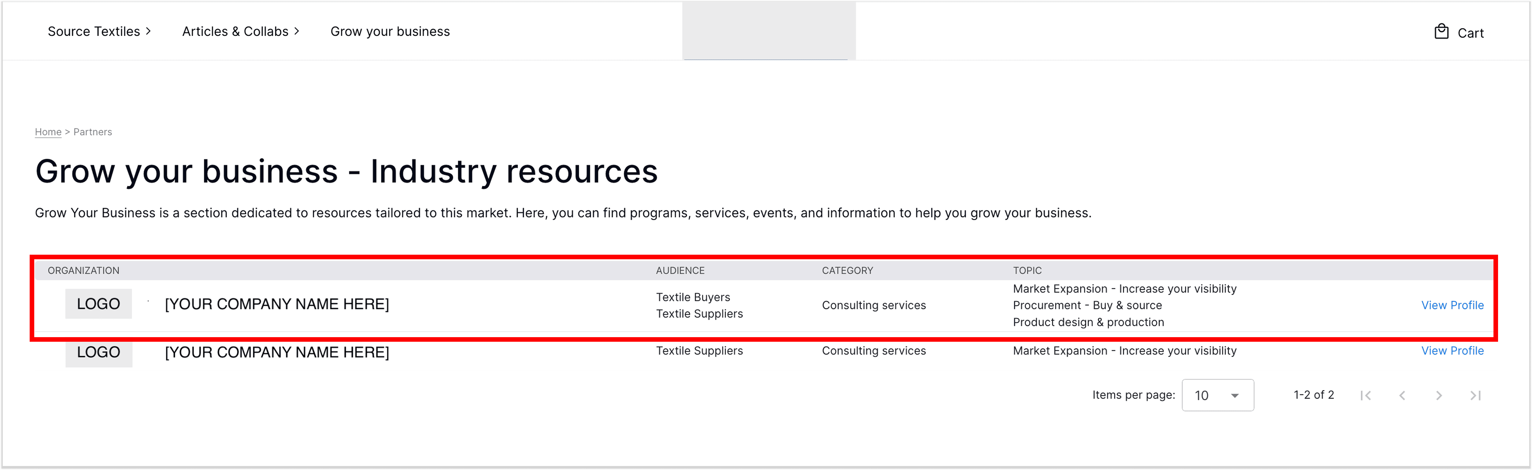 Grow Your Business is a curated directory for the textile industry. It is where professionals go to discover services, programs, and events, and it is accessible directly from the platform’s main navigation.