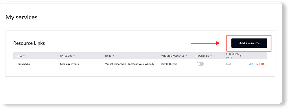Click the “Add resource” button in the top right corner.