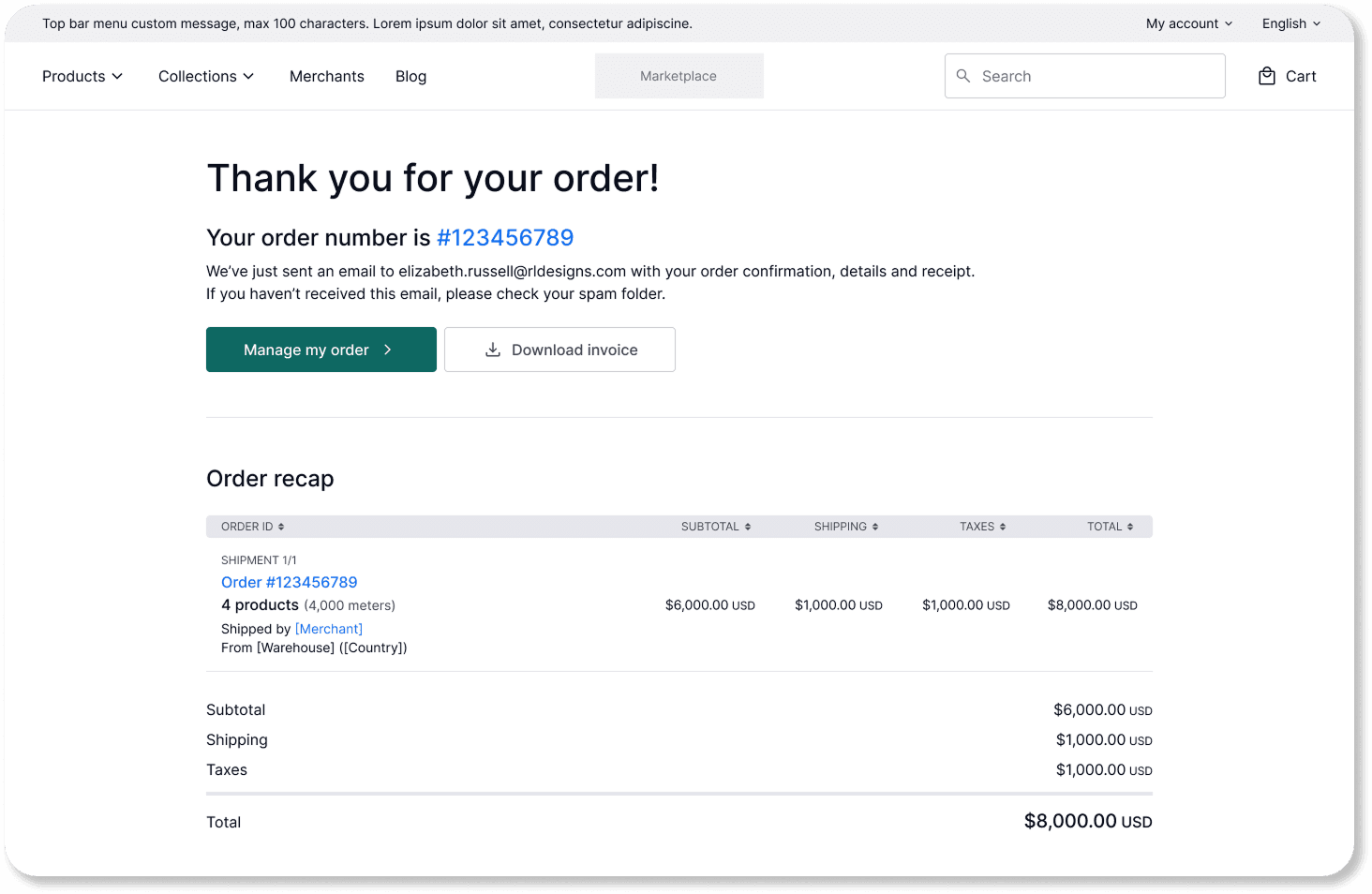 Once you complete your order, you’ll be taken to a confirmation page where you’ll see: