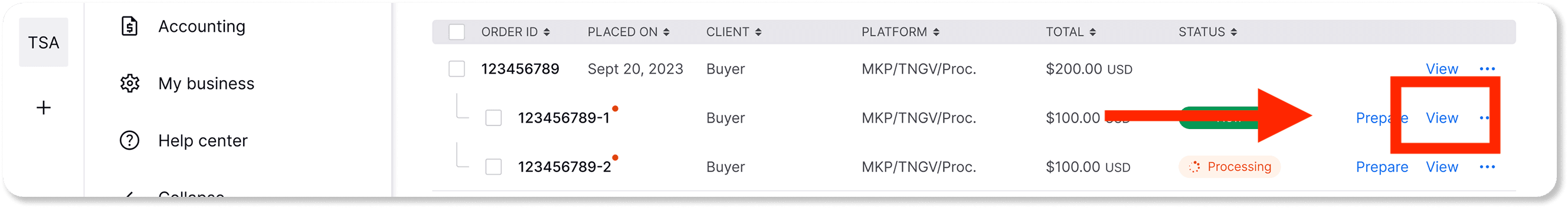 2. Click on 'View' to see all details of your order.