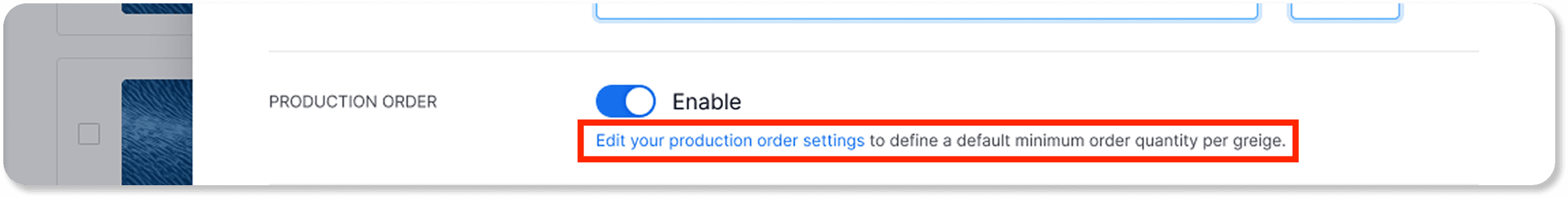 Click on “Edit your production order settings” to define a default minimum order quantity.