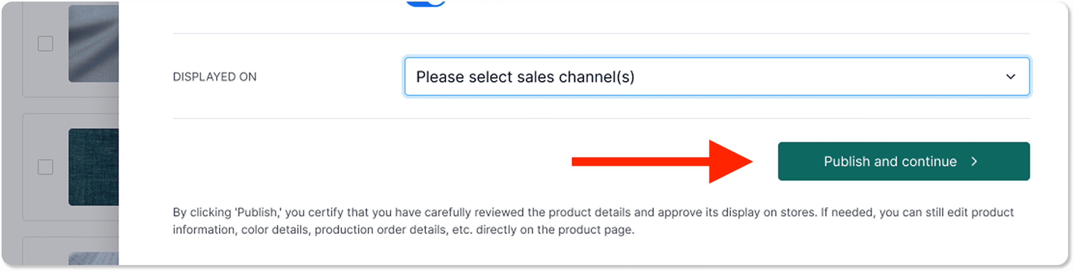 Click “Publish and continue” to successfully activate the product and move to the next one.