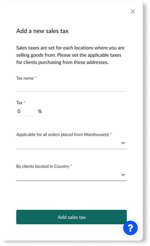 Sales tax rates vary by country, and often by regions within a country (states, provinces, territories, or municipalities). To ensure correct billing and payment processing, you are responsible for entering the applicable taxes in this section of the platform.